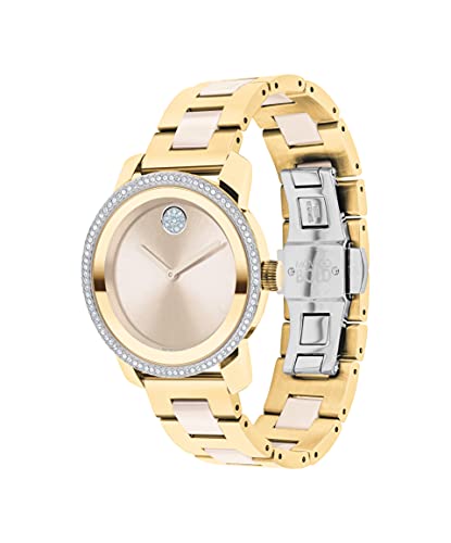 Movado Bold Ceramic Women's Swiss Qtz Chrono Stainless Steel and Bracelet Casual Watch, Color: Two Tone (Model: 3600785)