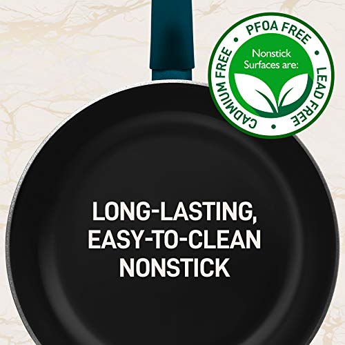 NON-STICK COATING: The non stick pot set cooking ware features a durable and long lasting nonstick coating for easy food release or tossing, cleaning & healthy cooking. It has a hard anodized exterior which makes the cookware resistant to high heat