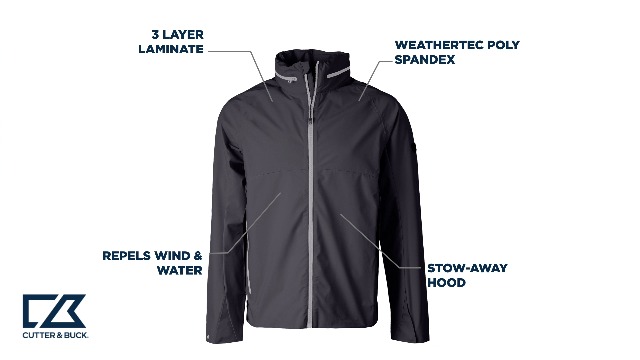 Cutter & Buck Vapor Water Repellent Stretch Mens Full Zip Rain Jacket