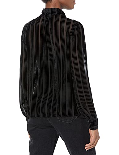 PAIGE Women's Bryla Top Long Sleeve Striped Burnout Mock Neck in Black