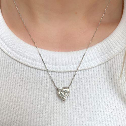 Abbie+Cleo White Moissanite Gemstone - Solitaire, Halo or Double Halo - Heart or Round Shape - Pendant in 10K or 14K White Gold, Chain 17in