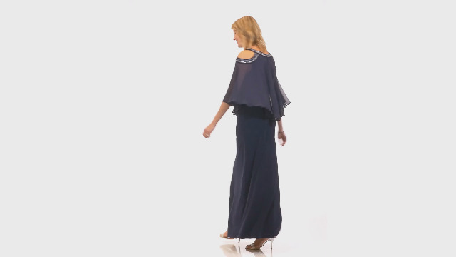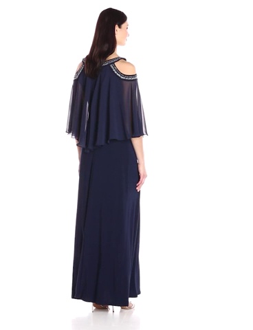 Betsy & Adam Women's Plus Size Long Metallic Stretch Cowl Neck Drape Back Dress