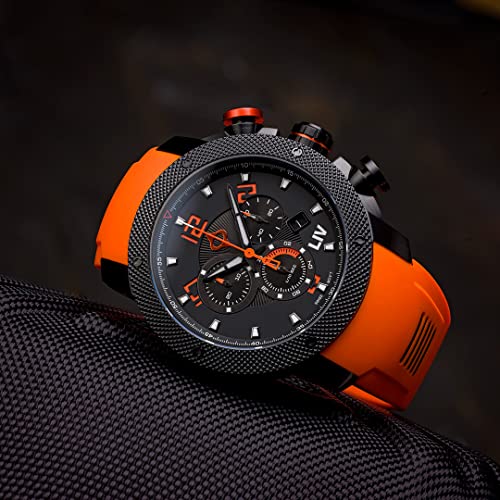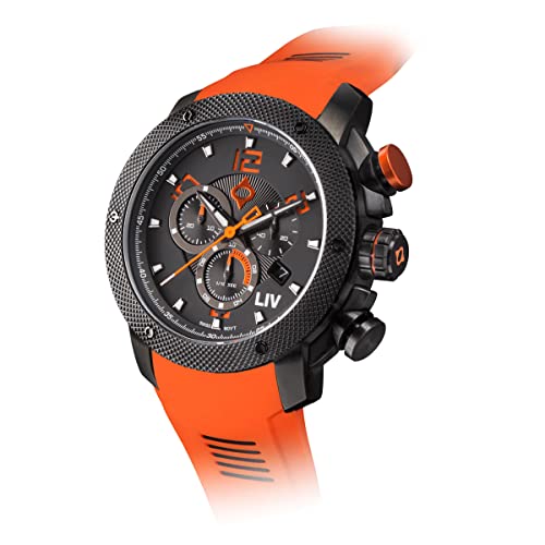 LIV GX1 Swiss Made Chronograph 45mm 316L SS Case, 3D Multi-Layer w/Quickset Date - Rugged Classic Watch for Men- Scratch Resistant Sapphire Crystal - 660 Feet Water Resistant - BGW9 Swiss Luminova