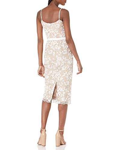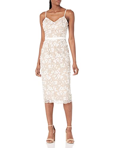 Dress the Population Women's Emma V Neck Embroidered Sleeveless Belted Midi Dress