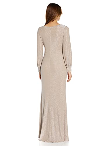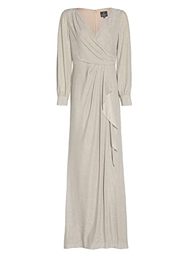 Betsy & Adam Women's Plus Size Long Metallic Stretch Cowl Neck Drape Back Dress