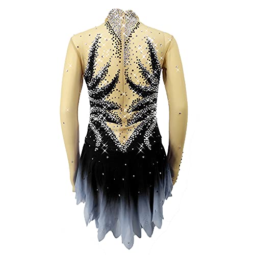 Ice Skating Competition Dress Adult Black White Patterns for Sewing Long Sleeves Figure Skating Dress Kids Girls