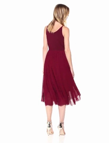 Dress the Population Women's Alicia Plunging Mix Media Sleeveless Fit and Flare Midi Dress