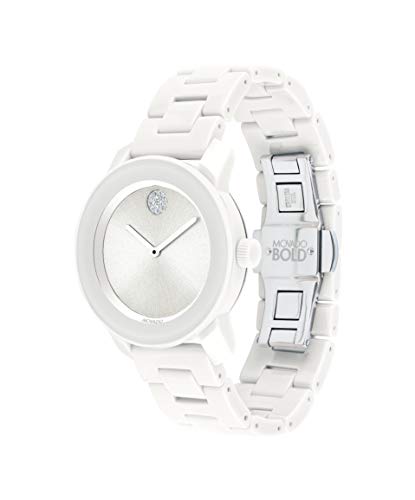 Movado Women's Bold White Ceramic Steel Case and Link Bracelet, White