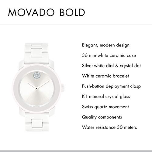 Movado Women's BOLD Ceramic Watch with a Crystal-Set Dot, Black/Silver (Model 3600535)