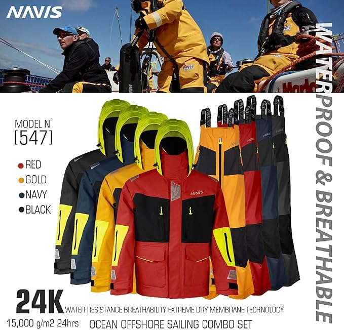 Men's Sailing Jacket & Bib Pants - Ocean PRO 3-Layer Shell, Waterproof, Breathable, Durable Combo Set