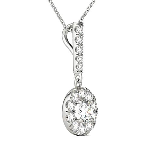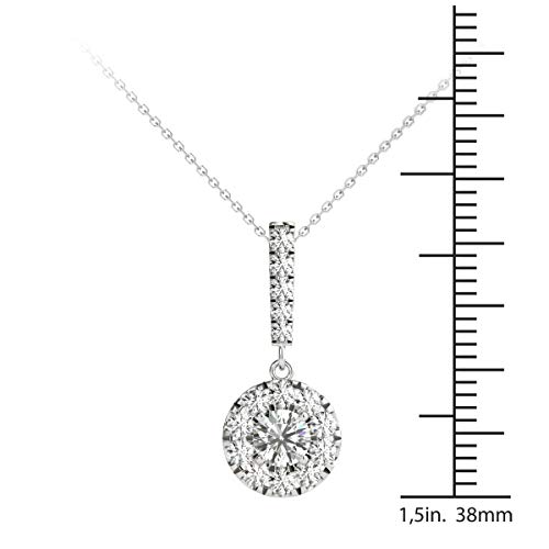 VAARYA Natural Diamonds Halo Pendant Necklace AGS Certified 14K White Gold 3/4 Ctw GH/SI2-I1