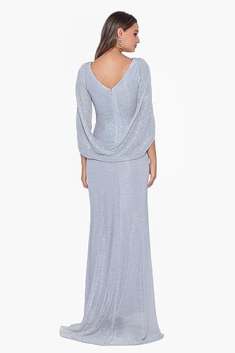 Betsy & Adam Women's Long Stretchy Metallic 3/4 Sleeve Cowl Neck Drape Back Formal Dress