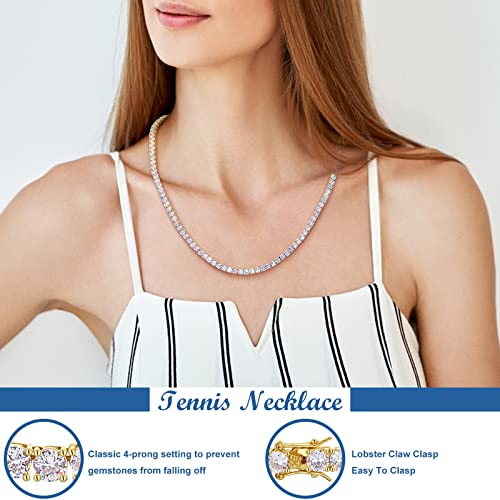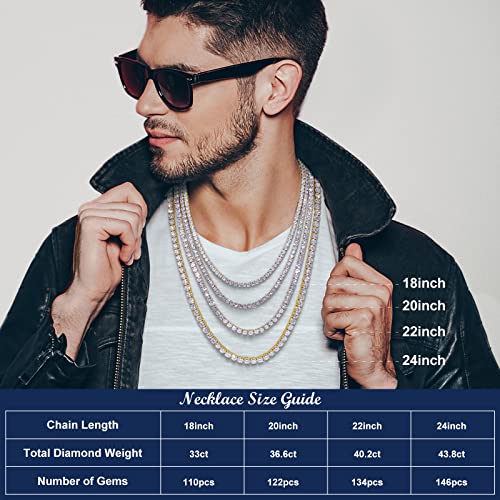 40.2Carat Moissanite Tennis Necklace Diamond Necklace for Men 18K White Gold Plated 925 Sterling Silver Women's Necklace Chains 4MM D Color VVS1 Moissanite Necklace with GRA Certificate 18-24 inch