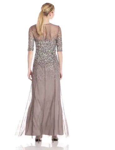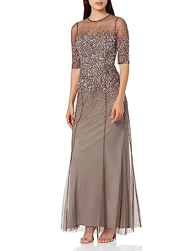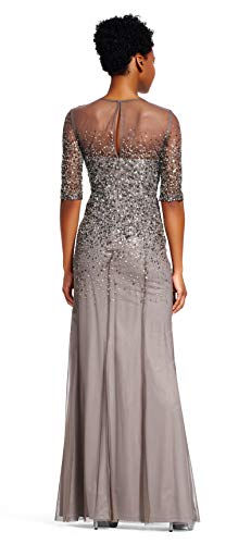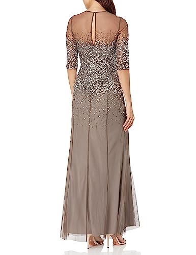 Adrianna Papell Women's 3/4 Sleeve Beaded Illusion Gown with Sweetheart Neckline