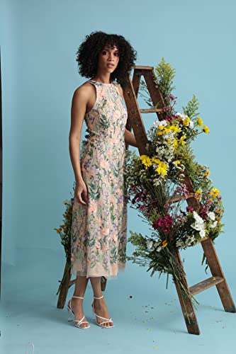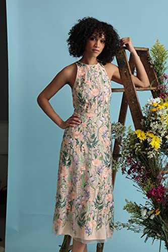 Maggy London Women's Floral Embroidered Halter Midi Dress with Back V-Neck