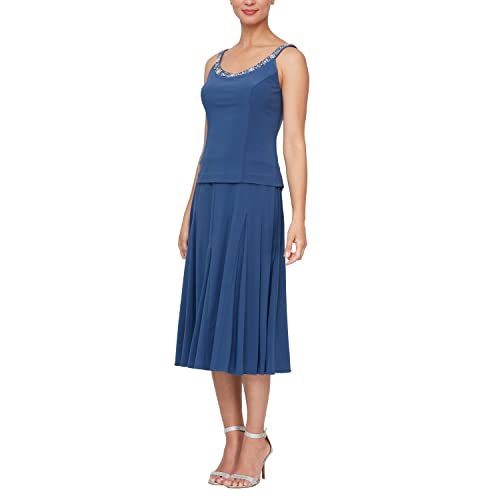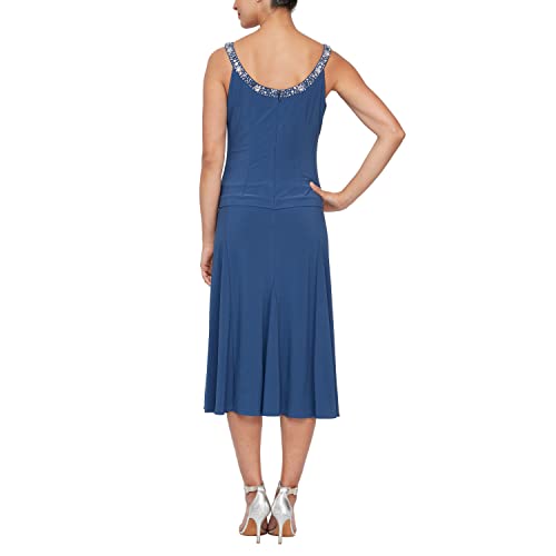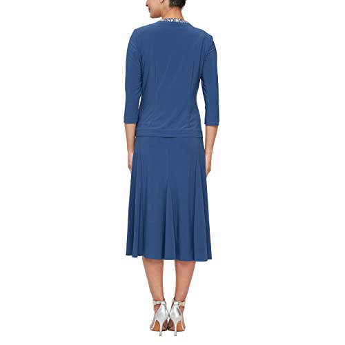 Alex Evenings Women's 2 Piece Tea Length Jacket Dress with Sequin Beaded Trim