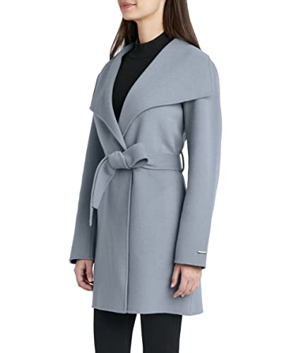TAHARI Women's Lightweight Wool Wrap Coat with Tie Belt