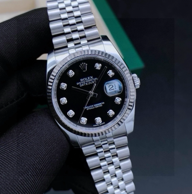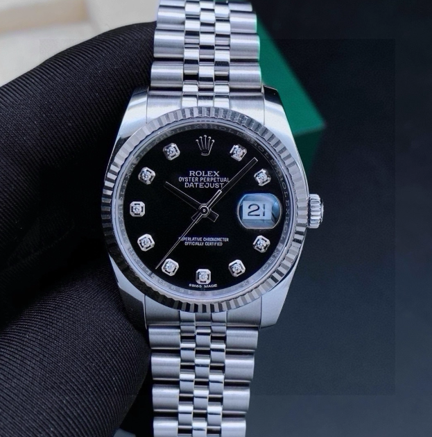 #Rolex New Datejust 116234 Men's Black Dial Diamond Scale 3135 Movement Diameter 36
