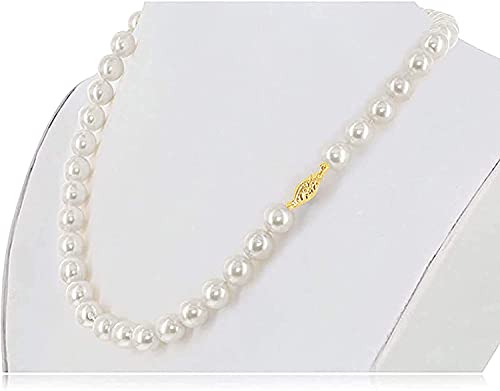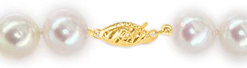 14K Gold AAAA White Japanese Akoya Cultured Pearls 18" Silk-Knotted Strand Pearl Necklace - Choice of Pearl Size & Clasp Gold Color