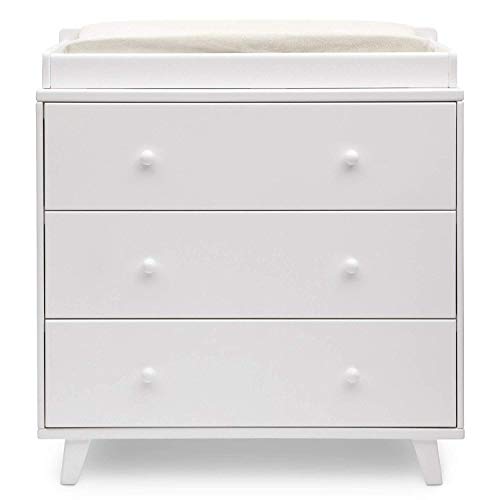 Strong and sturdy wood construction Features include 3 spacious drawers and removable changing topper (pad sold separately) Easy to clean: Waterproof cover is easy to wipe clean and features an adorable quilted, teddy bear pattern Keeps baby safe: safety straps and two contoured sides keep baby securely in place while dressing them or changing their diaper