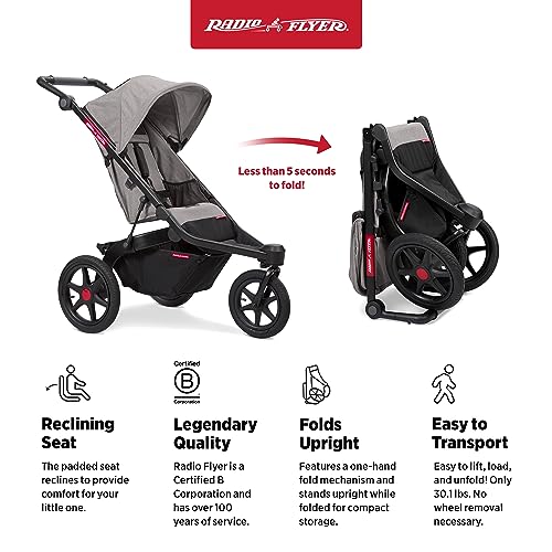 Radio Flyer Momentum Jogging Stroller, Infant Stroller with Quick Switch, 6+ Months, Gray