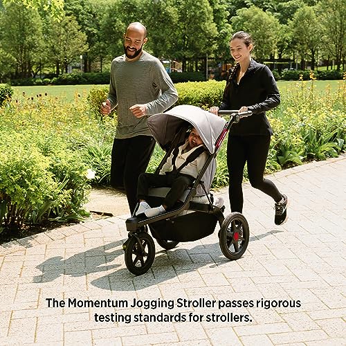 FOLDS UPRIGHT FOR STORAGE: The Momentum Jogging Stroller features a unique folding mechanism allowing the stroller to conveniently stand upright when folded. This stroller folds more compactly than others, and the one-hand fold allows for easy storage. This stroller is portable and can be stored or taken anywhere!