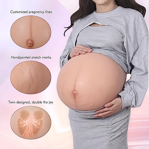 ROANYER Silicone Fake Pregnant Belly Realistic Twins Baby Bump False Pregnancy 5-9 Month for Film Props Cosplay Costumes