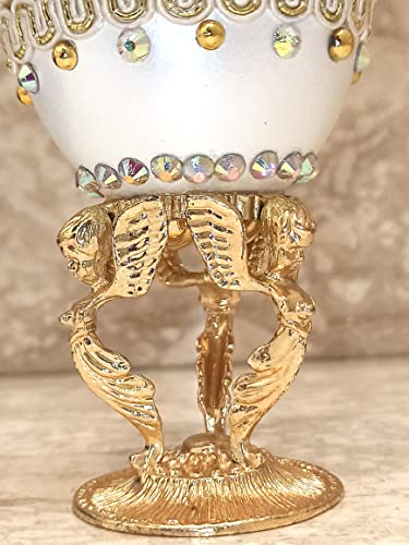 💖Vintage Russian Faberge egg Christian Angel decor 24k GOLD HAND embellished by master jewellery. Each item comes secured in a luxury gift box. Unique display piece Collector's item . Home decor.Wedding ring box, Christening Cross box, Baptism, Confirmation, First Communion, Birthday, Anniversary, Christmas, Easter egg ,Bridal shower, Guardian Angel Decorative box for Jewelry. A remarkable hand decorated luxury angel Russian Faberge egg gift for a special loved one!