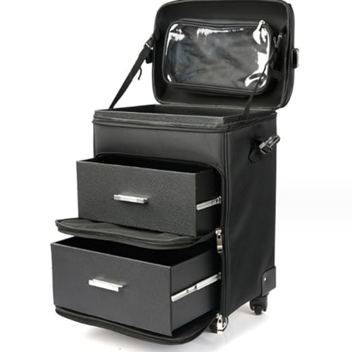 RePaLY Cosmetic Trolley Bag, Wheeled Cosmetic Case Made of Pvc Material with Telescopic Handle and Drawer, Large Capacity Cosmetic Bag Suitable for Makeup Artists and Hairstylists