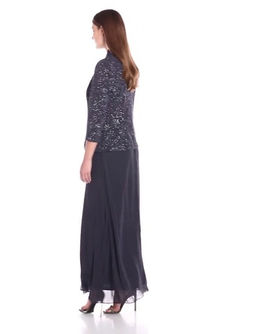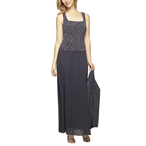 Alex Evenings Women's Long Dress with Mandarin Neckline Jacket (Regular Petite Plus)