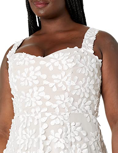 Dress the Population Women's Corey Plunging Mix Media Cap Sleeve A-line Midi Dress