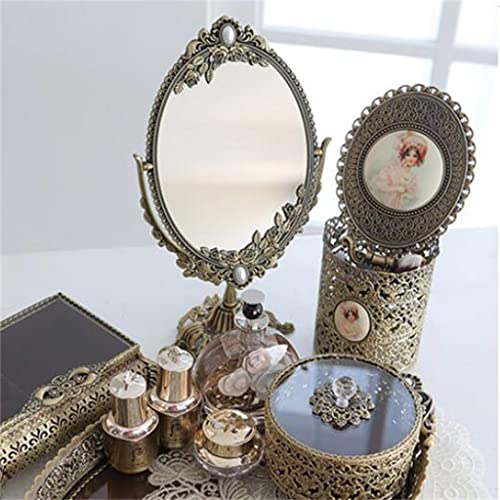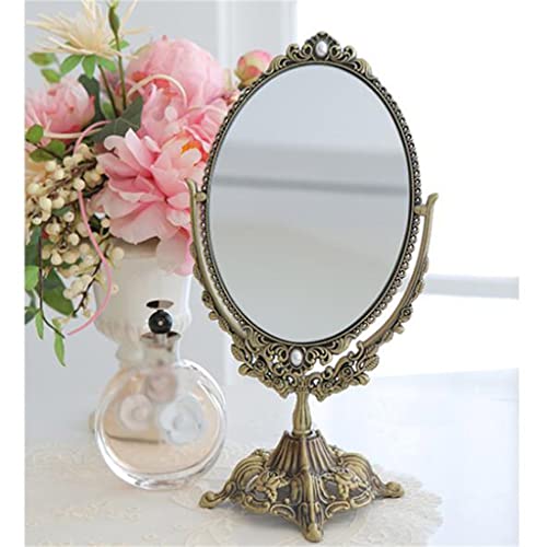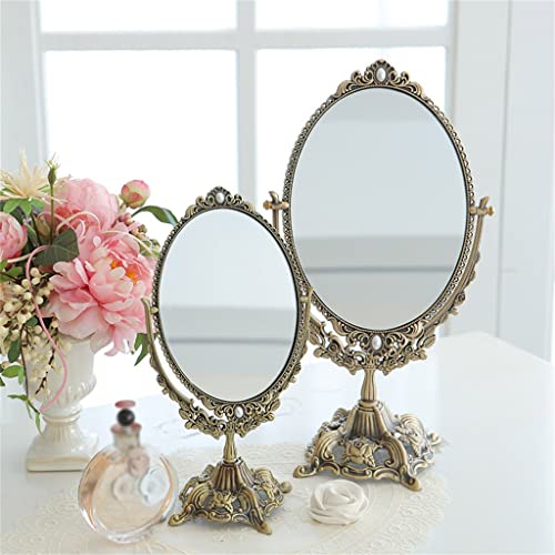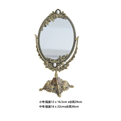 Retro Decorative Colorless Dressing Table Metal Double Sided Table Mirrors Copper European Style Makeup Mirrors (Color : D, Size : 16.5 * 29cm)