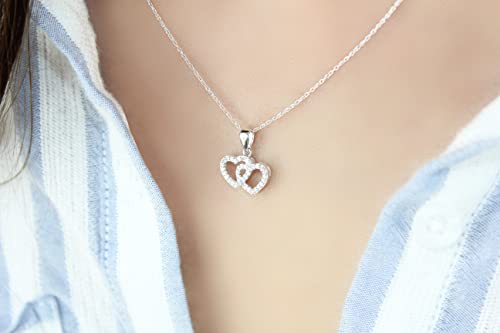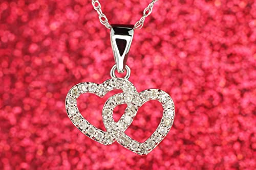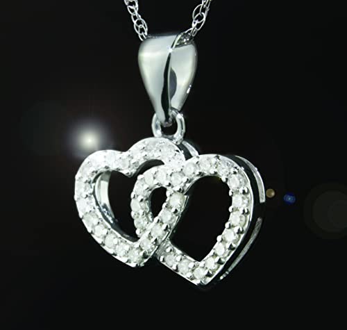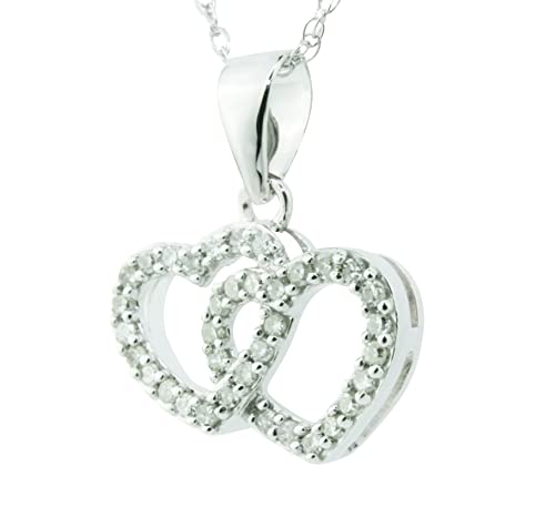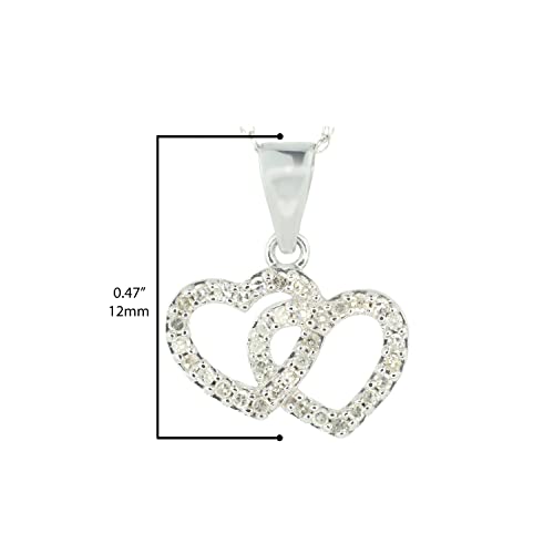 Belantina 10K White Gold 1/8 Cttw Diamond Double Interlocking Hearts Pendant Necklace - 18" (H Color, I2 Clarity)