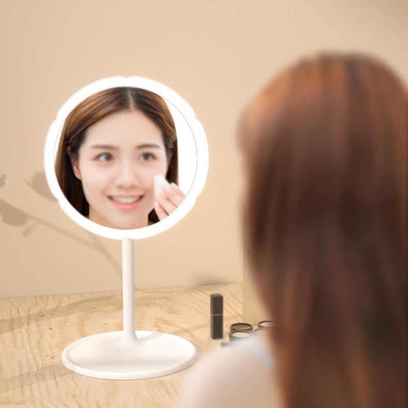 Sunlight makeup Makeup room level makeup, effortlessly creating makeup High definition, no color difference, beauty, and easy painting High definition , showcasing details, daylight level fill, and realistic and natural lighting, Easily handle delicate makeup This makeup mirror has a metal stainless steel bracket that can be folded and adjusted. It can be placed on the table or retracted into a bag. This small mirror is very lightweight. Convenient to carry, very suitable for travel and camping.