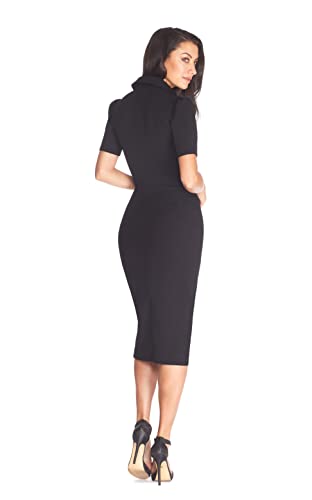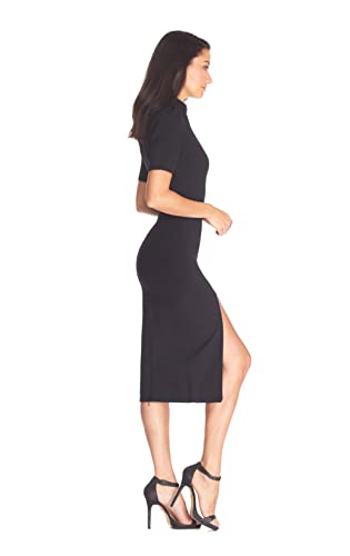 Dress the Population Women's Gloria Collared Zip Neck Short Sleeve Bodycon Midi Dress