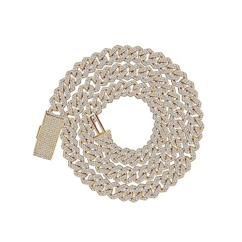 ISAAC WOLF Lab Created 10mm Cuban Link Chain Moissanite 14k Gold Over Sterling Silver Men Women in WHITE, YELLOW or ROSE GOLD