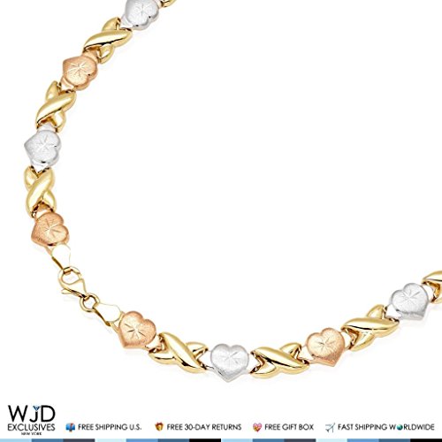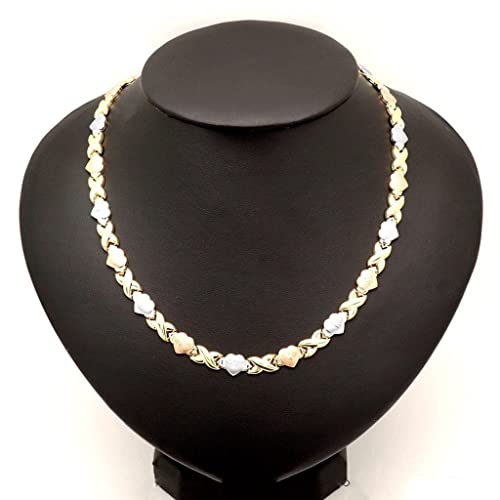 14K Gold Tri-Tone Hearts, Hugs & Kisses XO Necklace 17.5"