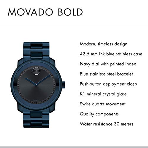 Movado Men's BOLD Metals Watch with a Printed Index Dial, Blue (Model 3600296)