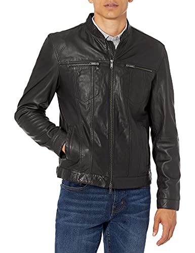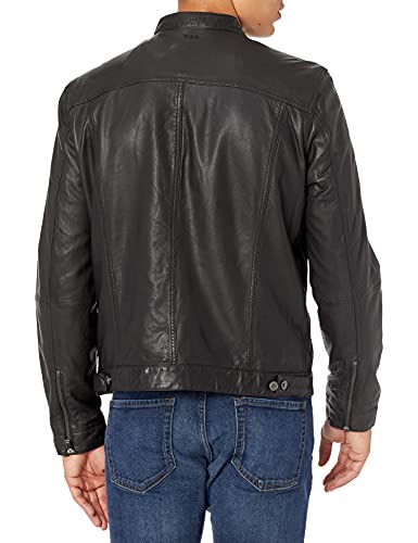 John Varvatos Star USA Men's Brando Band Collar Leather Jacket