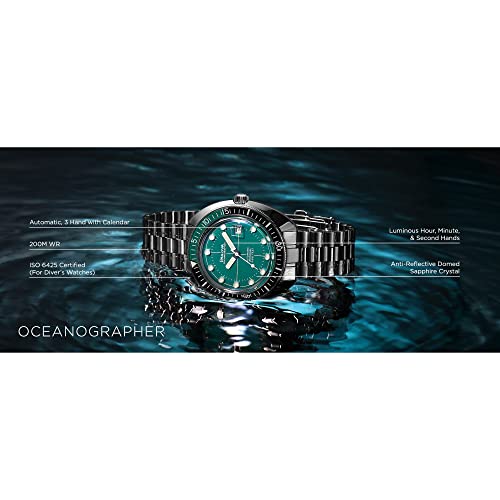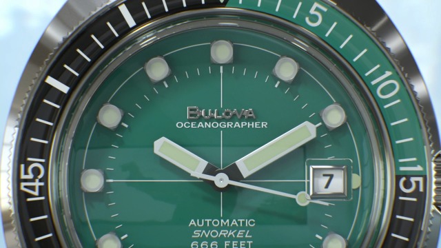 Bulova Men's Oceanographer Stainless Steel 3-Hand Automatic Watch, Green Dial Style: 96B322