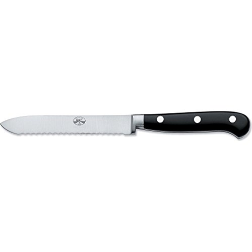 Coltellerie Berti Insieme Tomato Knife w/Magnetized Wood Block | Black Lucite Handle