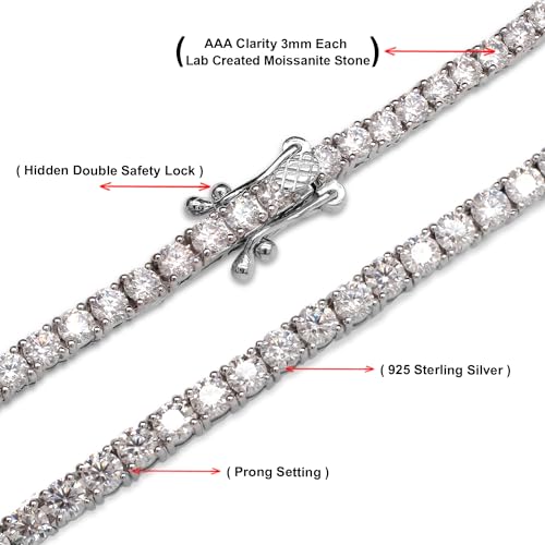 SAVEARTH DIAMONDS 925 Sterling Silver 3MM Moissanite Tennis Chain Necklace for Men & Women 12.90-17.75ct Lab Created Diamond Jewelry 18K Gold Plated Tennis Necklace Chains