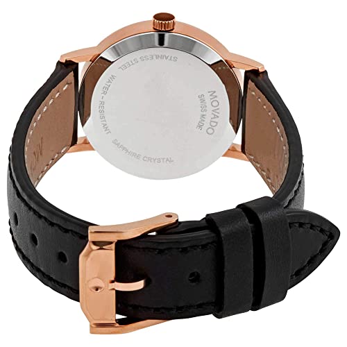 MOVADO Swiss Museum Classic Black Dial Women's Rose Gold PVD Slim Leather Watch
