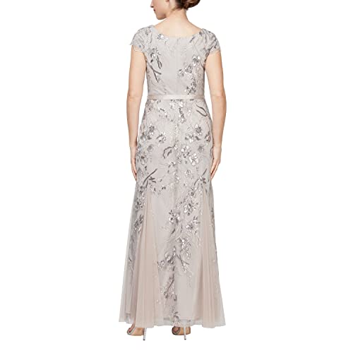 Alex Evenings Women's Long A-line Sequin Lace Dress Short Sleeves (Regular Petite)