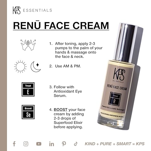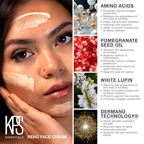 KPS Essentials Renū Face Cream - Hydrating Moisturizer for Normal to Dry Skin, Anti-Aging, Wrinkle Smoothing, and Tightening - With Echinacea, Myrrh, Argan, and Jojoba Oil - 1 oz