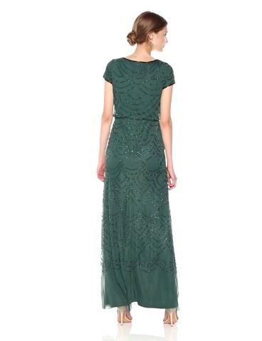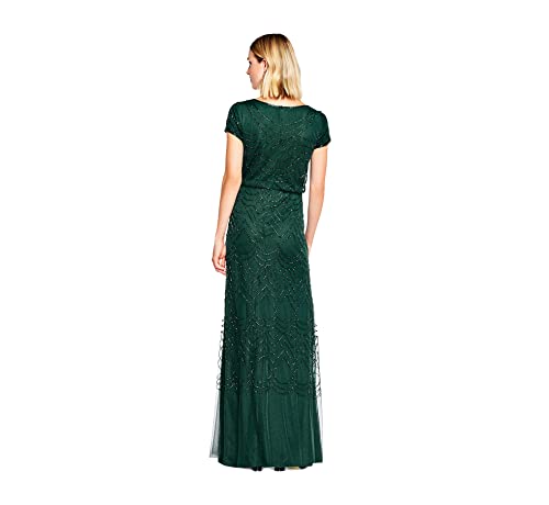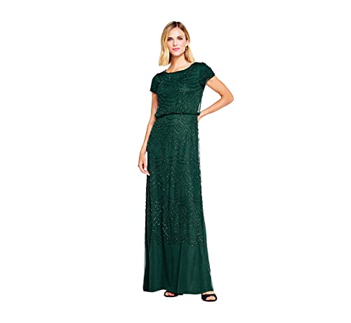 Adrianna Papell Women's Short Sleeve Blouson Beaded Gown